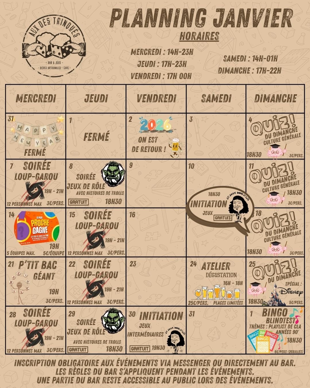 Parce qu’on ne joue jamais mieux qu’en bonne compagnie, on vous prépare toute l’année des soirées animées, quiz, tournois et autres événements ludiques pour des moments pleins de rires (et de mauvaise foi, on ne juge pas 😄).
